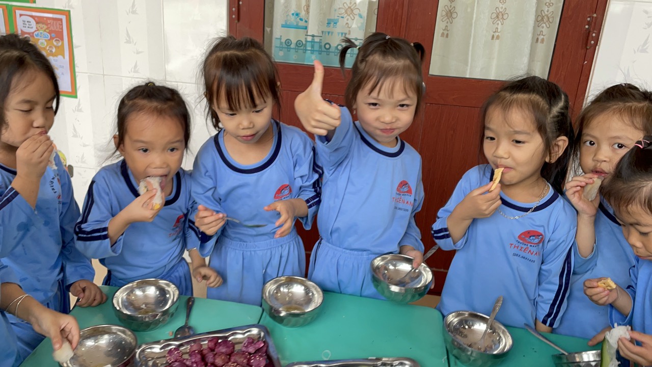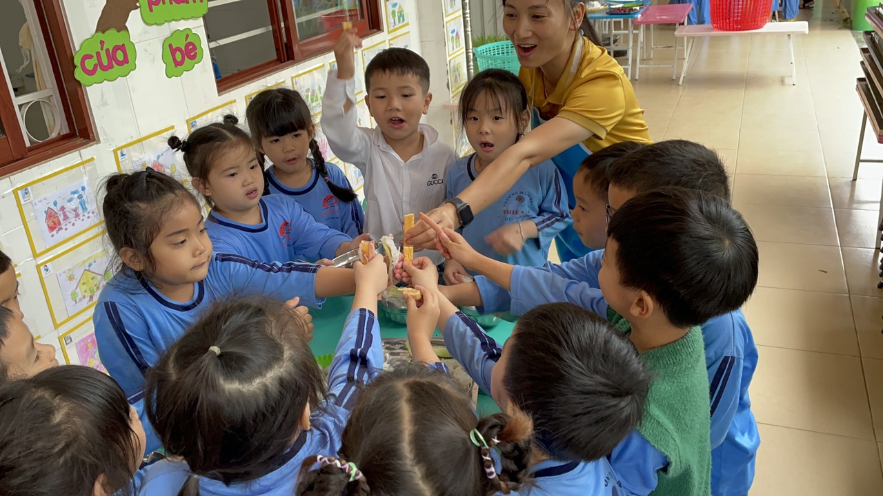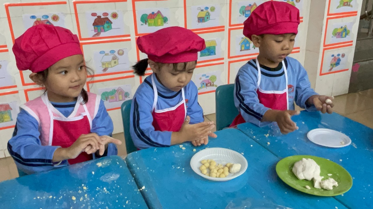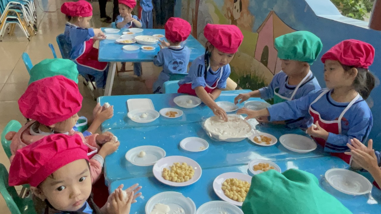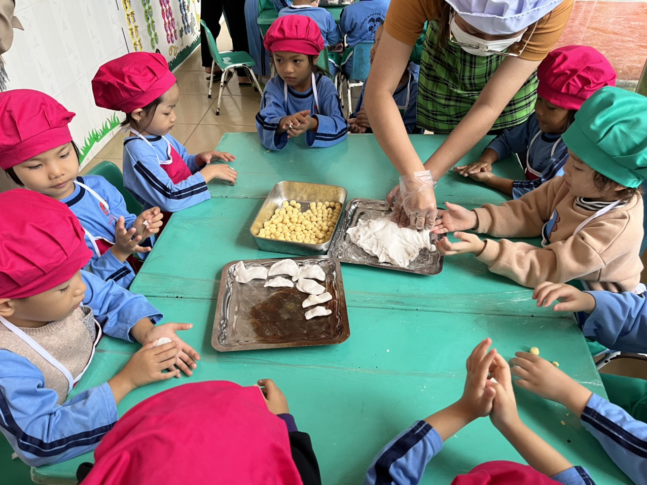 Ngày thứ nhất trong chuỗi hoạt động 3 ngày (14/11) dành cho các cháu khối Lá thực hiện với 3 món: gởi cuốn, bánh bột, bánh khoai. Nhìn các cháu làm bánh tuy có vụng về nhưng sự hứng thú, vui tươi luôn xuất hiện trên khuôn mặt, nhât là khi nhìn những sản phẩm và cách thưởng thức của các bé, các cô thấy vui và hạnh phúc dù có sự vất vả trong việc chuẩn bị cho các con.