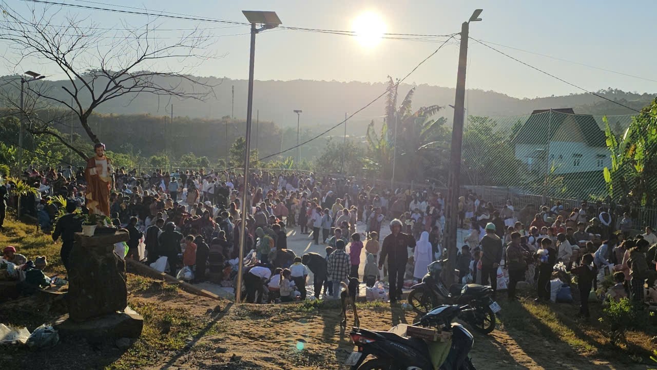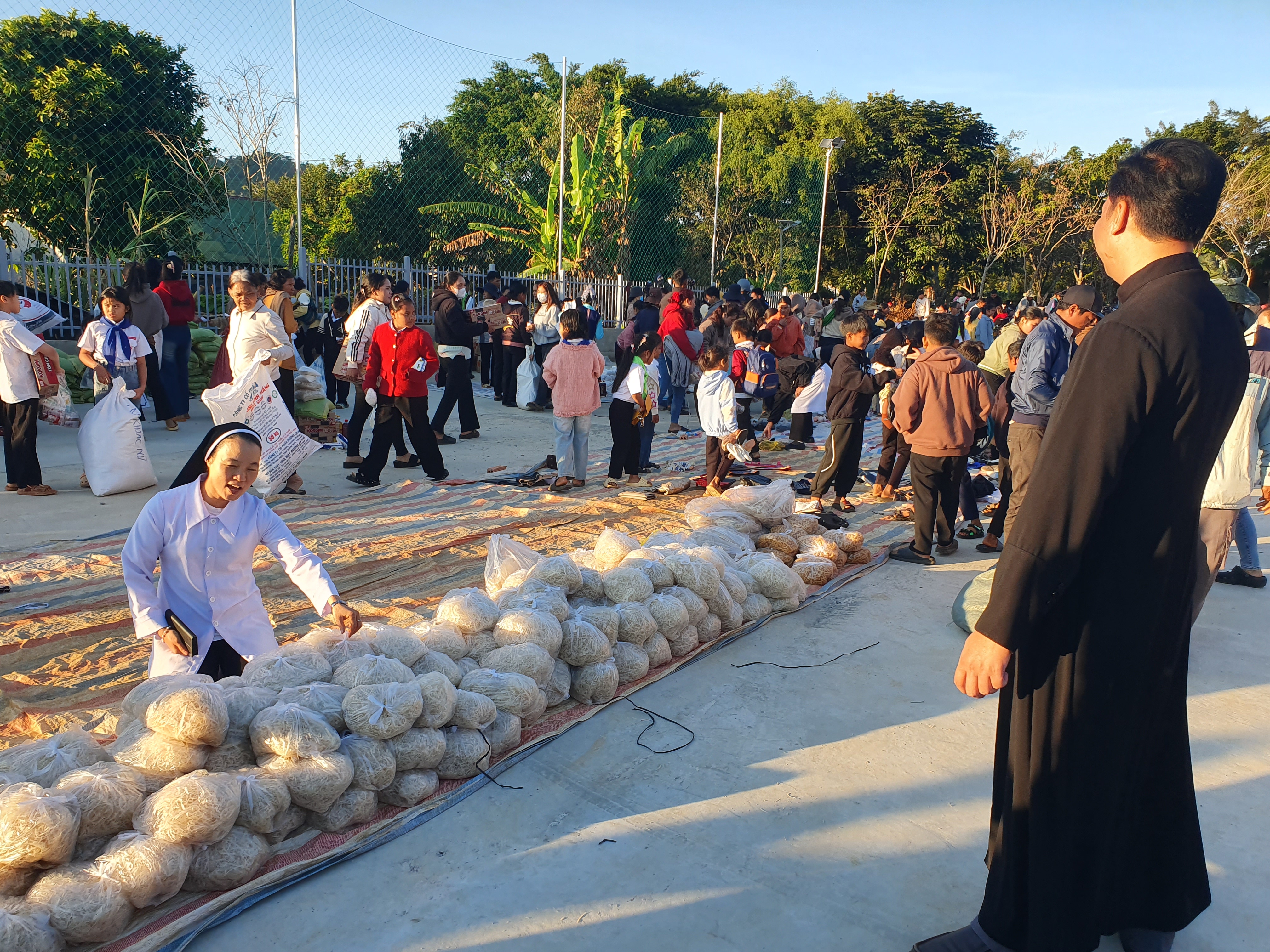 Ngay từ sáng sớm, khuôn viên giáo xứ đã rộn ràng