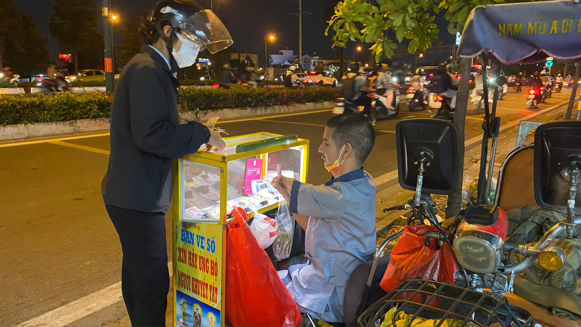mưu sinh. Ngày nào may mắn trọn vẹn, anh bán được chừng 200 tờ vé số. Tiền lời