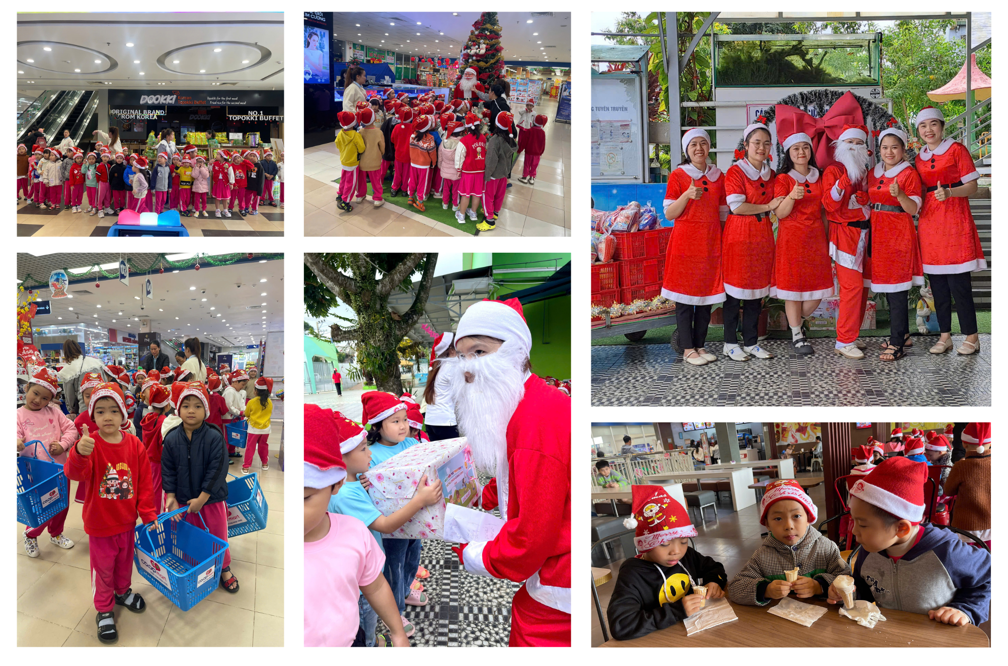 Tiếp nối niềm vui, các em được giáo viên hướng dẫn tham quan và mua sắm tại siêu thị gần trường. Đây là cơ hội để các bé học cách lựa chọn đồ dùng Giáng Sinh như quà tặng, đồ trang trí và trải nghiệm thực tế việc tính toán giá tiền, mang lại những bài học bổ ích trong cuộc sống.
