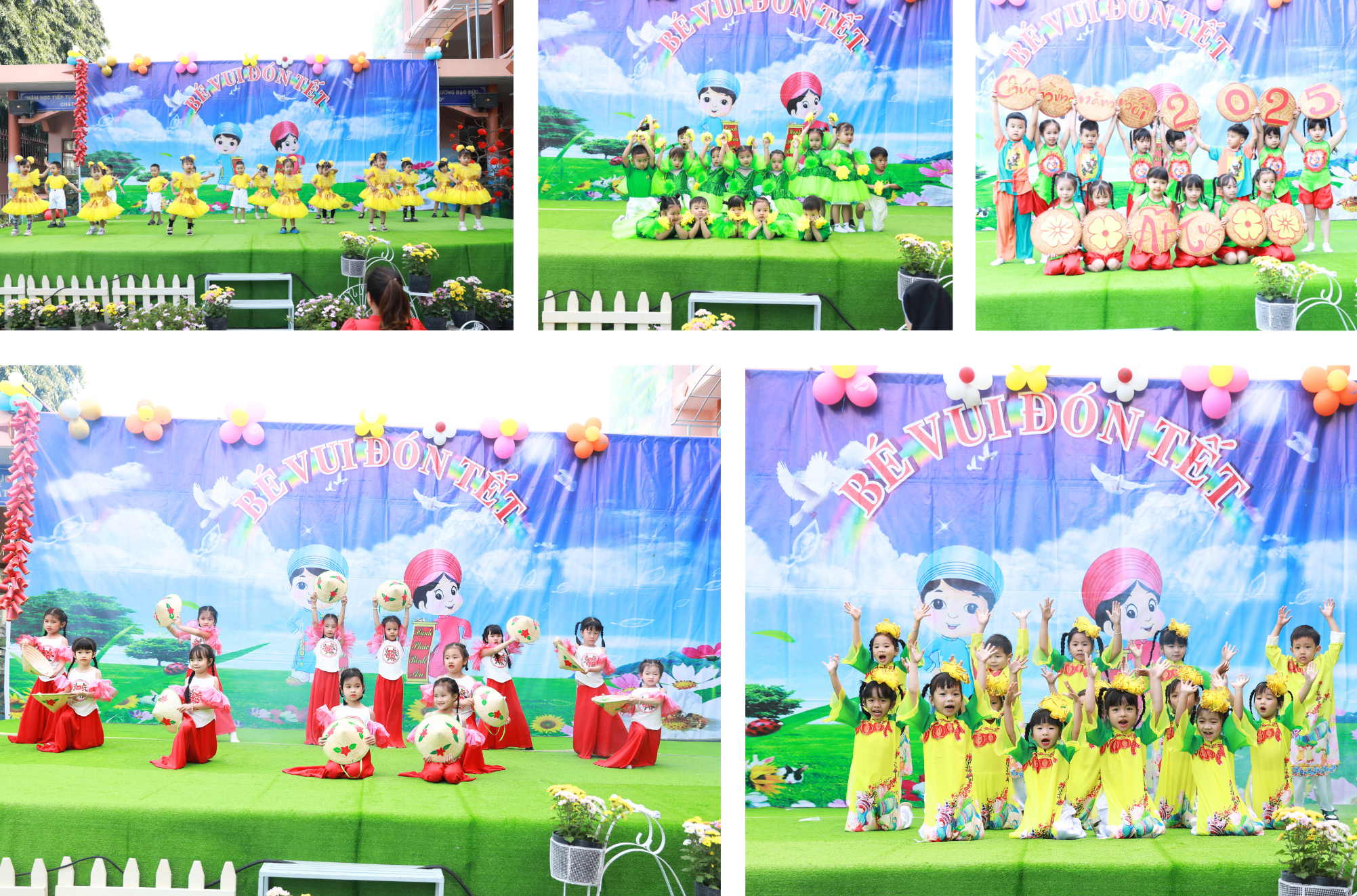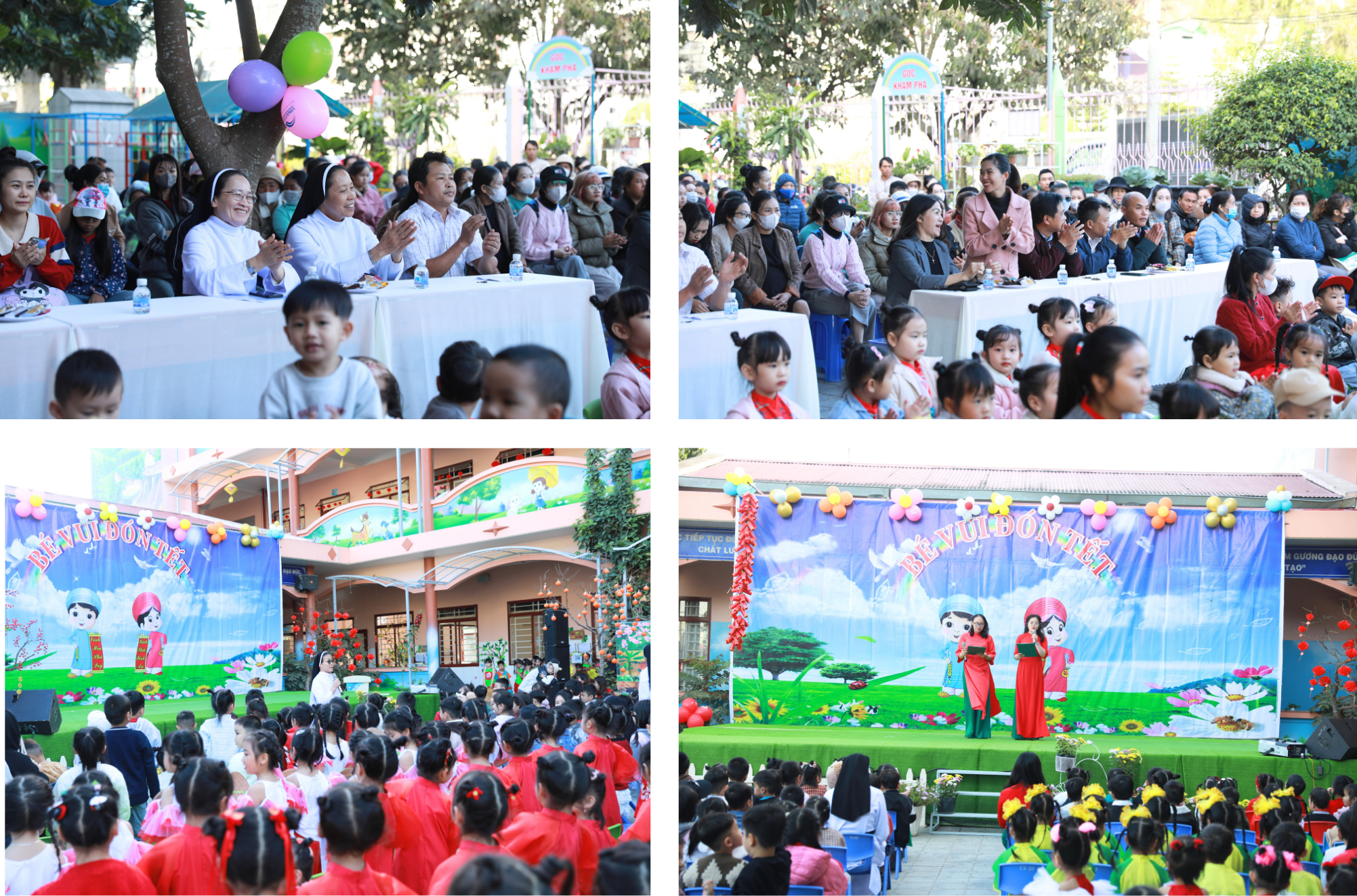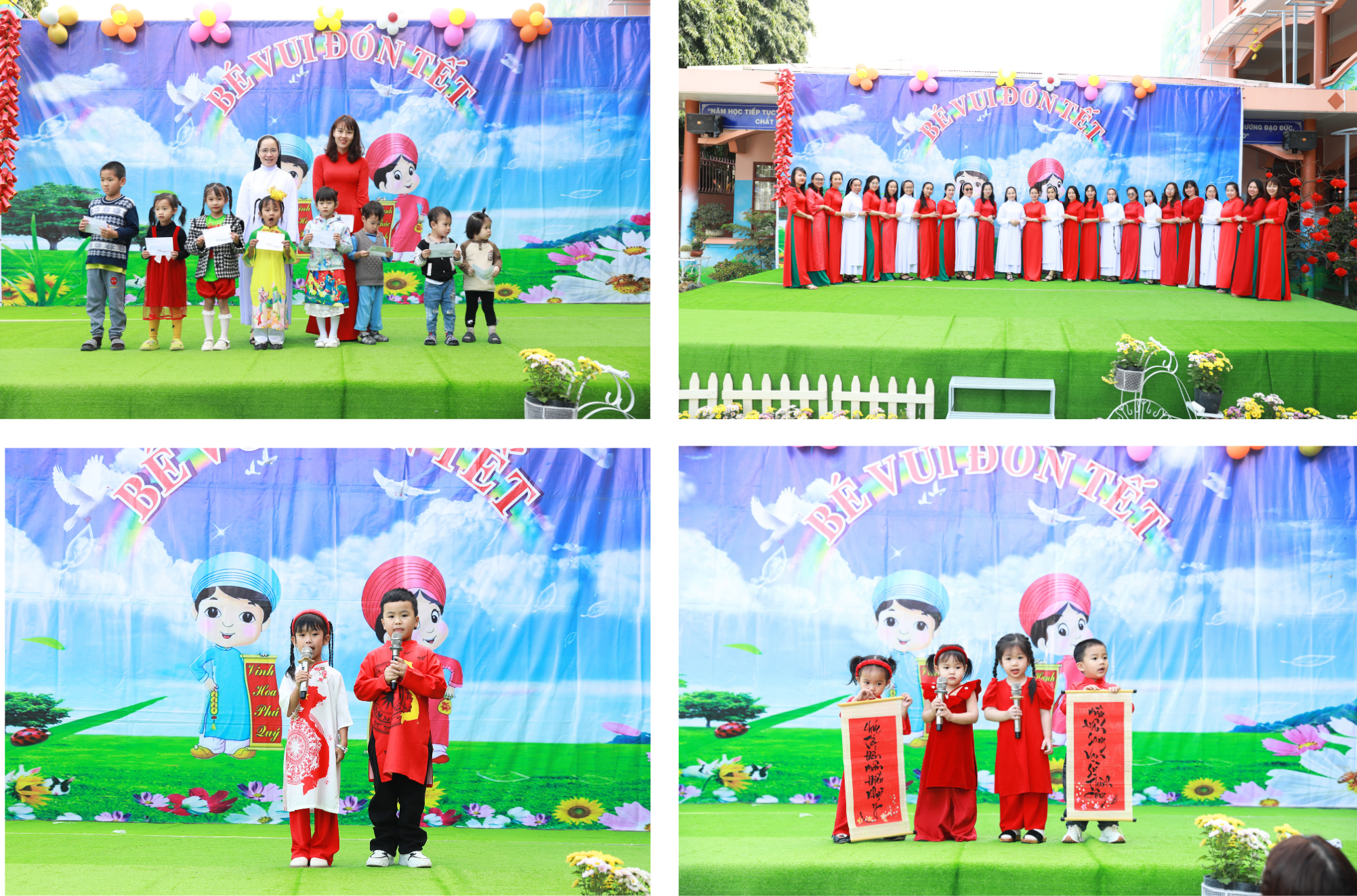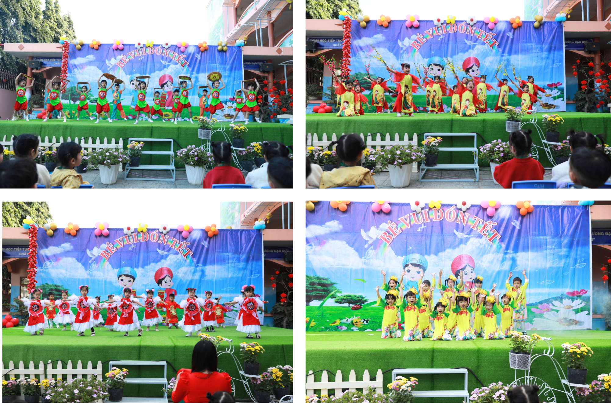 Các tiết mục văn nghệ đến từ 11 lớp học nối tiếp nhau, mỗi phần trình diễn như một bông hoa rực rỡ điểm tô cho mùa xuân. Đặc biệt, lời chúc Xuân hồn nhiên từ hai bé đại diện đã làm tan chảy trái tim của tất cả những người tham dự.